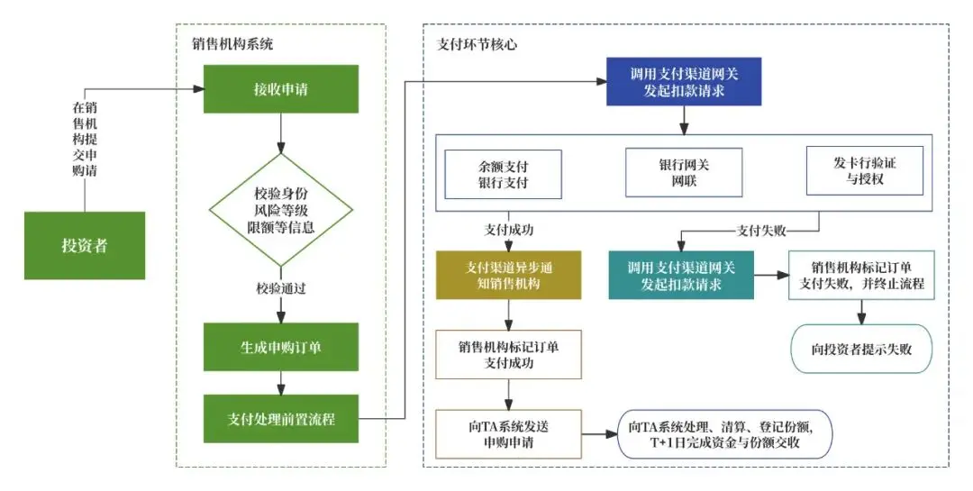 然而整个基金申购和赎回流程中,叫支付有点不妥,准确点应该叫:资金划拨,支付只是整个流程中的子环节,支付环节的核心在于“协议扣款”模式,这与普通购物支付直接扣款不同,需要强调基金交易T日指令、T+1扣款的特性。下面就叫聊聊:支付子环节。