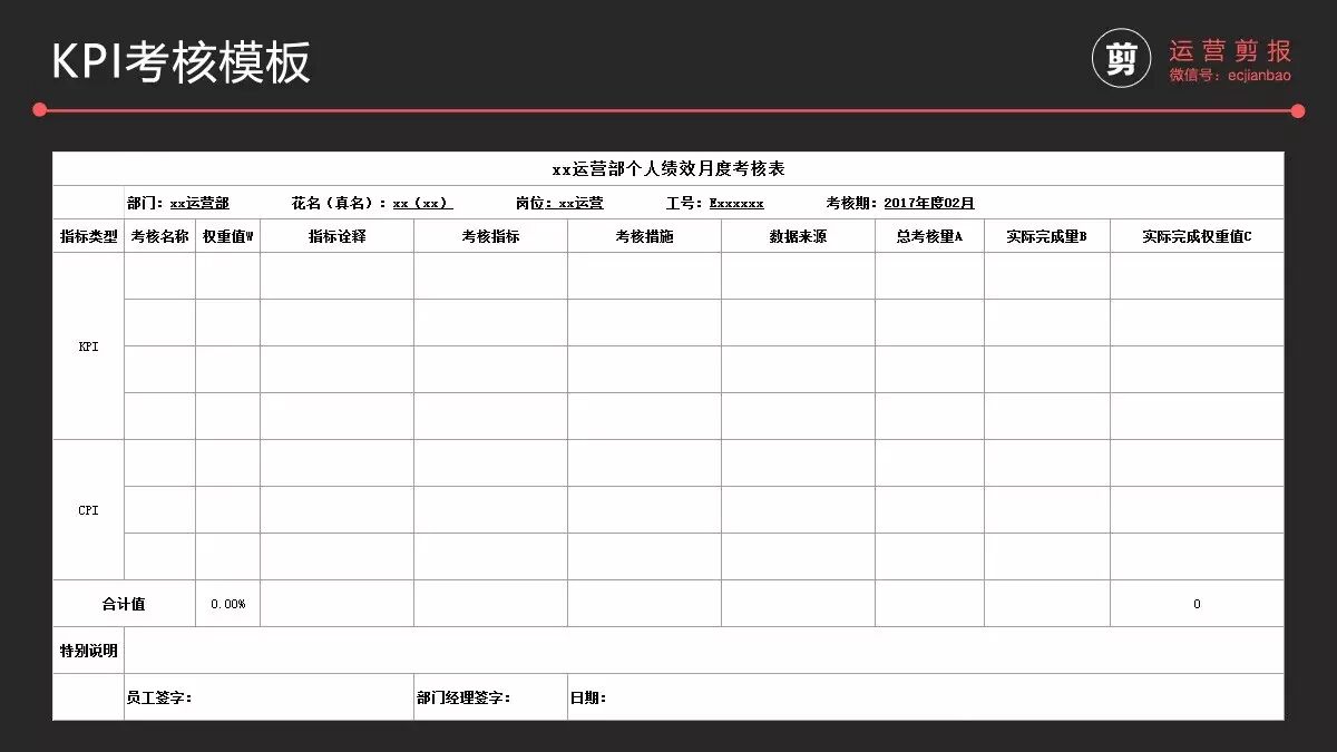 以一个线上运营部门来说,包含:内容运营、推广专员、O2O专员、活动专员、页面策划等多个岗位,究竟哪些人适合单独做考核,哪些人适合绑定考核,哪些岗位适合跨部门考核等,都需要考虑清楚。