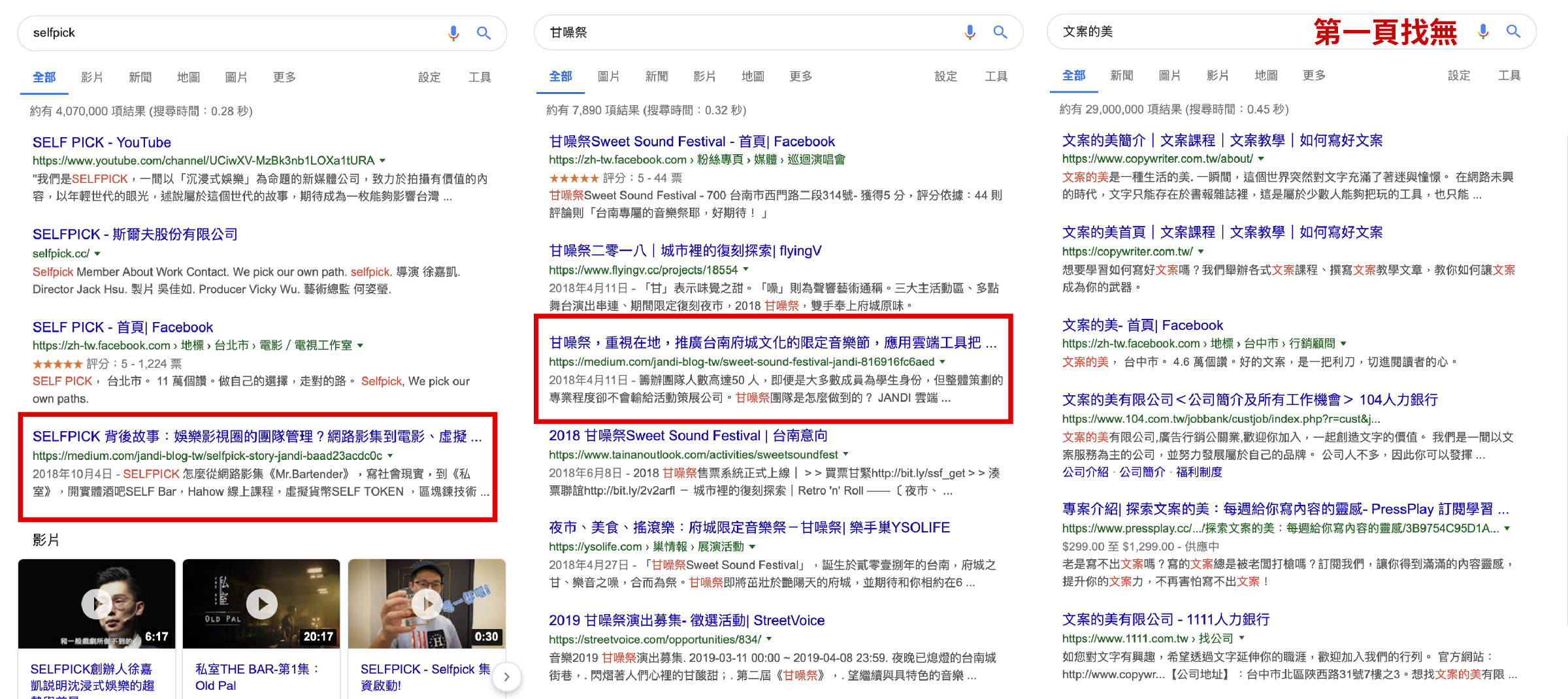因此,抢占 Google 搜寻的第一页为首要目的。