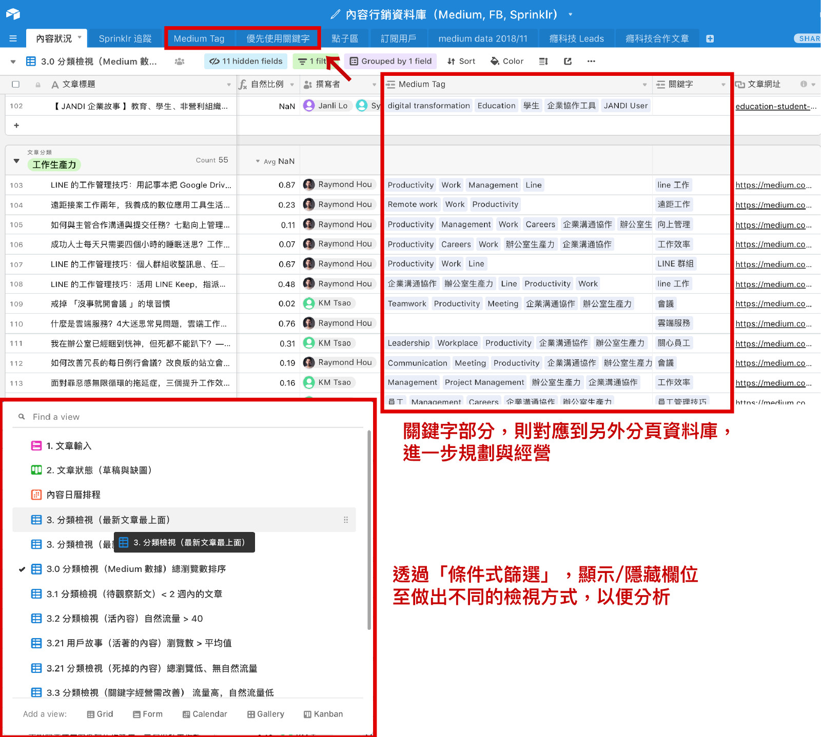 Airtable 作为我们内容数据资料库,用于记录检视、比较分析非常方便