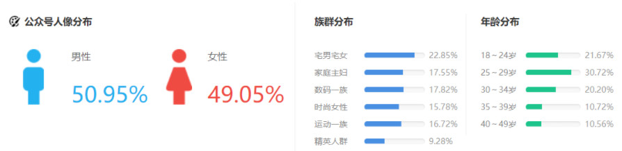 2014年10月加入新榜,时尚公众号500强;简介——有型有款,智趣不凡;预估活跃粉丝超80万;目前已经处于公众号发展的成熟期。
