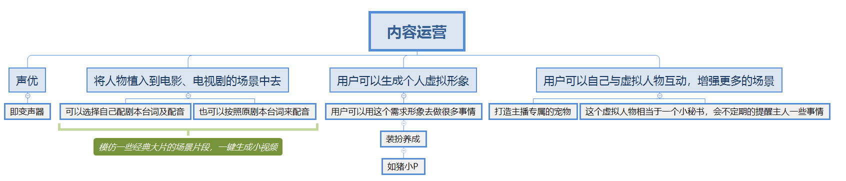 - 声优——即变声器 ,这个对用户来说是一个有价值的功能,可以变成个需求能联动用户多次使用并推荐;