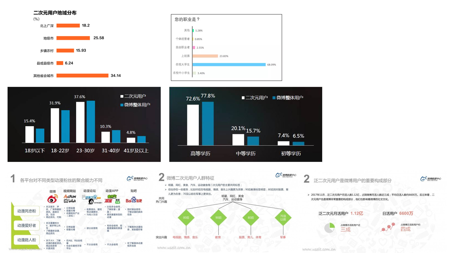 - 触媒习惯: 二次元用户在微博上聚集较多,其次是A站、B站;