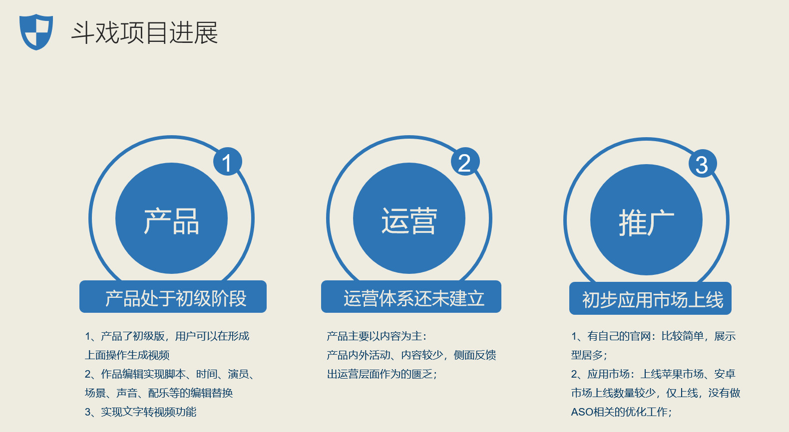 - 运营层面: 搭建起初步运营体系,由于产品主要为视频内产品,在该阶段,应重点放在打造优质视频内容上(便于吸引并聚焦第一批种子用户);