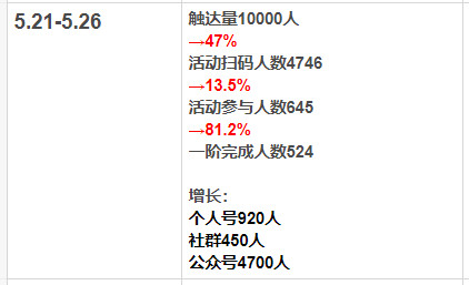五天,个人号增粉900+,社群接近一个500人群,公众号涨粉近5000,0成本。而且各个环节的转化率都还不错,转化率都在标准值以上。