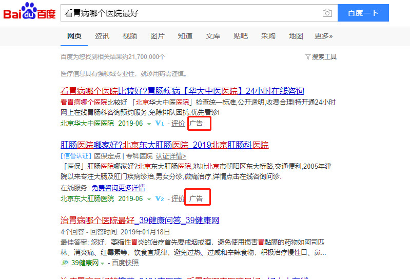 搜索结果第一页充满广告的百度