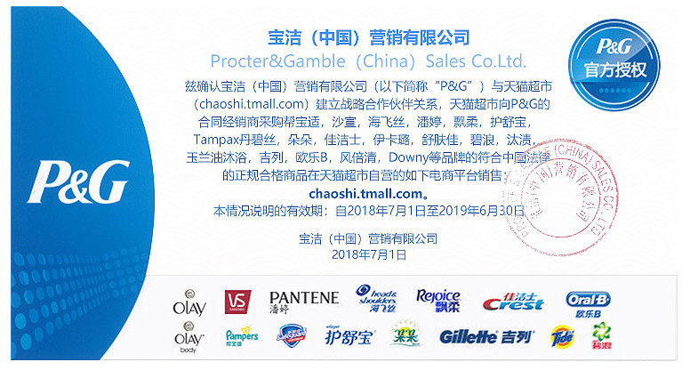 图中说明了保洁公司旗下的品牌数量(并且这些品牌都是很有知名度的品牌),通过展示实力建立信任感,并且有官方授权的表现,大企业背书,拟真的公章样式也让人更容易信任。