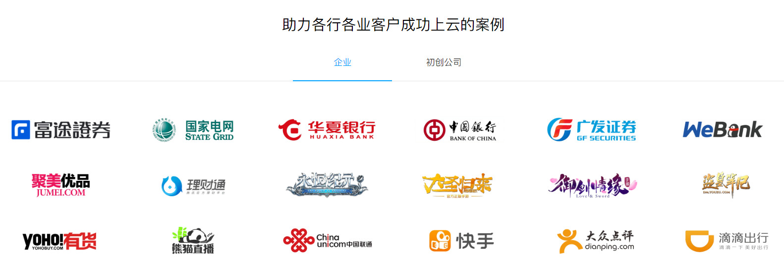 企业官网中往往会放一些合作伙伴中的著名企业LOGO(下图是腾讯云首页的一部分)。