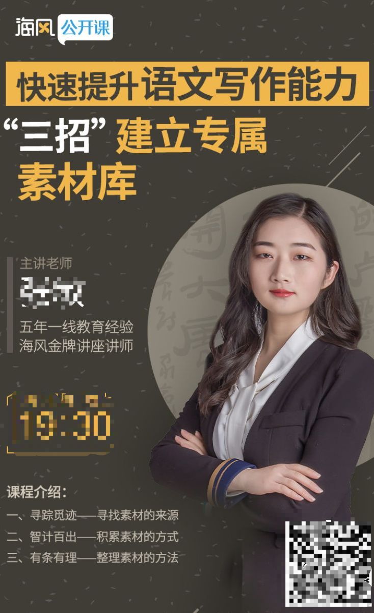 一般学科类讲座是由机构业务能力比较强的老师来讲,多为资深老师或教研老师,比如:在线1对1机构海风教育,其系列公开课就以学科指导类讲座为主,选择的就是其内部经验丰富的「金牌老师」。