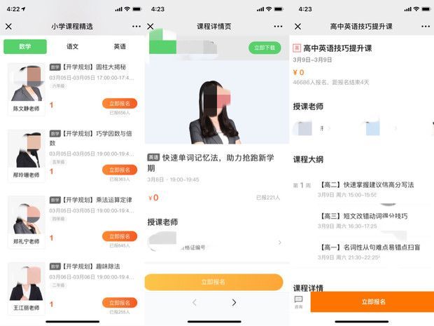 这是体验课的另一种常见形式,也用0元、1元等的低价手段吸引家长报名,上课模式多为大班直播课,内容偏向于某一学科的细分内容。