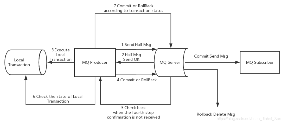 其中,补偿阶段用于解决消息Commit或者Rollback发生超时或者失败的情况。