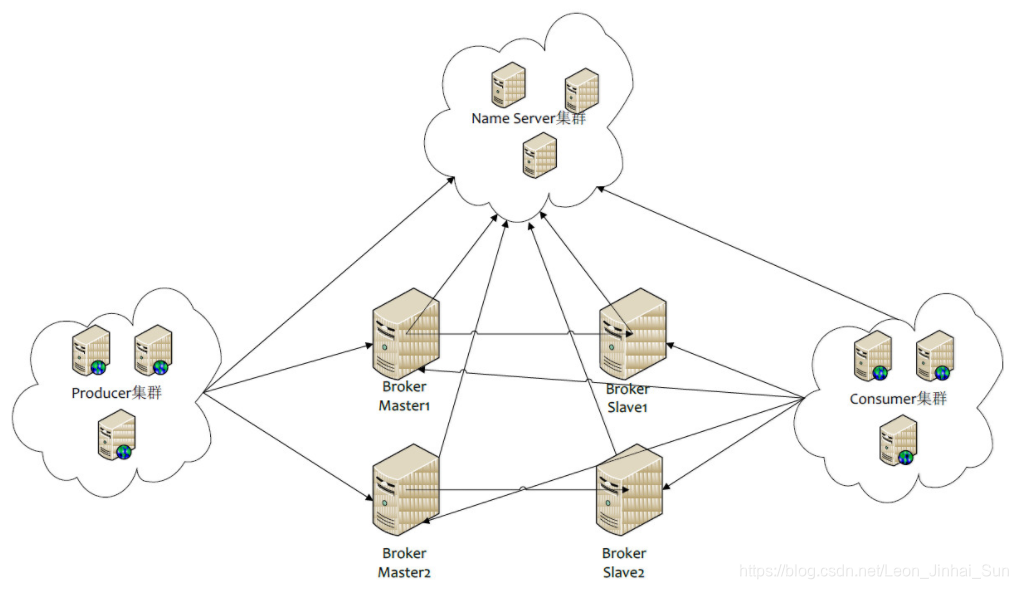 NameServer:管理Broker;举例:各个邮局的管理机构