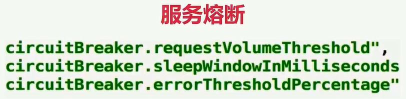 // 3.@HystrixCommand(commandProperties = {@HystrixProperty(name = "circuitBreaker.enabled", value = "true"),//设置熔断@HystrixProperty(name = "circuitBreaker.requestVolumeThreshold", value = "10"),@HystrixProperty(name = "circuitBreaker.sleepWindowInMilliseconds", value = "10000"),@HystrixProperty(name = "circuitBreaker.errorThresholdPercentage", value = "60")})