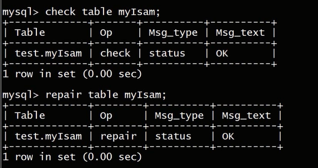 mysql还提供了一个命令行的工具,myisamchk --help,这个工具也可以对myisam表进行修复