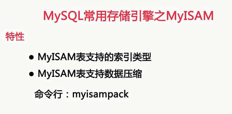 也可以对myisam表进行修复,有一点大家要注意,如果使用命令行工具对myisam表进行修复的话,则需要咱Mysql服务停止,在mysql服务运行的同时,如果使用命令行工具对表进行修复,可能使表造成更加大的损坏,这一点大家一定要注意,这里我就介绍好了Myisam表一些特点,以及如果损坏如何对他进行修复,下面我们来看一下myisam表还有哪些特性,首先来看看Myisam表所支持的索引,myisam表支持全文索引,并且在mysql5.7之前版本唯一原生就支持全文索引的官方引擎,另外,myisam还支持text和blob的前缀索引,如果myisam是一张很大的只读表的话,也就是在表创建完,进行导入数据后,就不会对表进行任何修改操作了,那么我们就可以对这种表进行压缩操作,这样就可以减少磁盘IO,所以说,myisam表是支持磁盘IO的,如果要对一张表进行压缩呢,我们可以使用myisampack命令,来压缩表中的数据,由于表中的数据是独立进行压缩的,读取单行数据的时候呢,不必对整个表进行解压