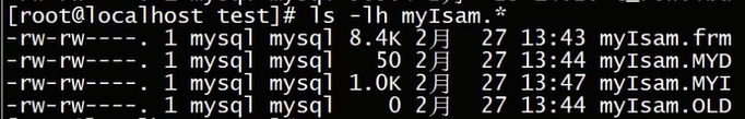我们来到另一个连接下,来看一下myisam这个文件ls -l myIsam*