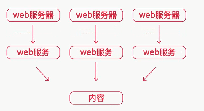 而对于WEB服务器来说,我们可以很容易的横向扩展,说白了呢,只要我们有足够的服务器,我们就可以在服务器上部署我们的WEB服务,web服务的程序是一样的,每台服务器对外提供的内容都是一样的