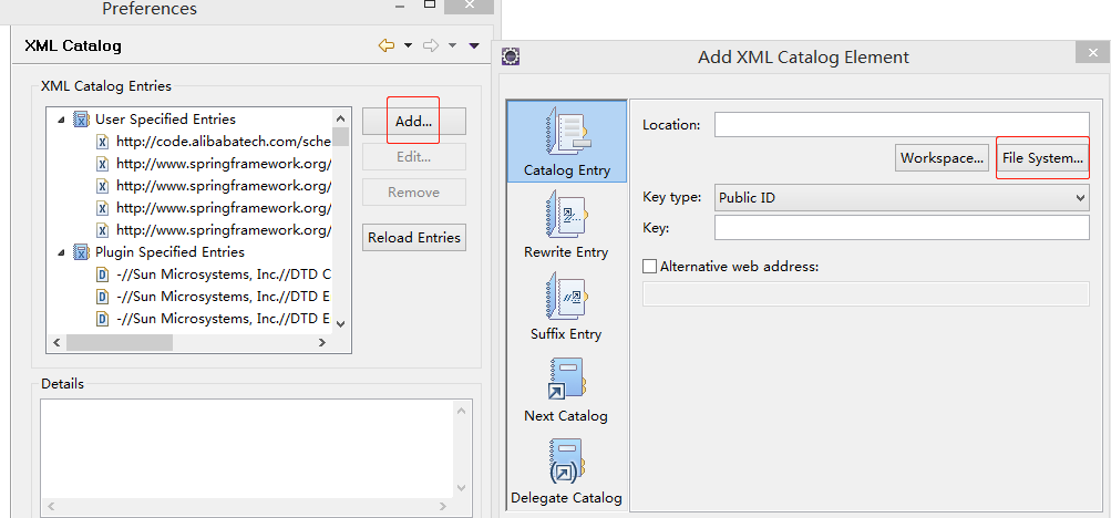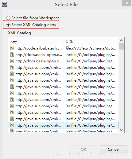 然后在下面选择select XML catalog entry
