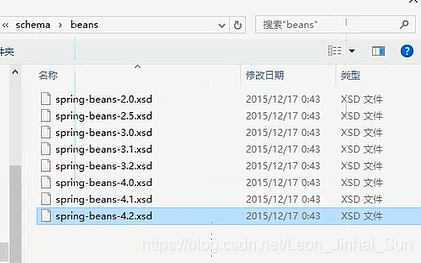 然后选择刚才Spring解压目录下,schema,进入到这里面,咱们今天第一个要找名为beans的schema,你会发现和以前的后缀就不一样了,这个是更先进的schema约束,咱们导入约束就选最新版