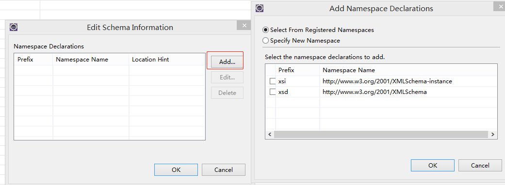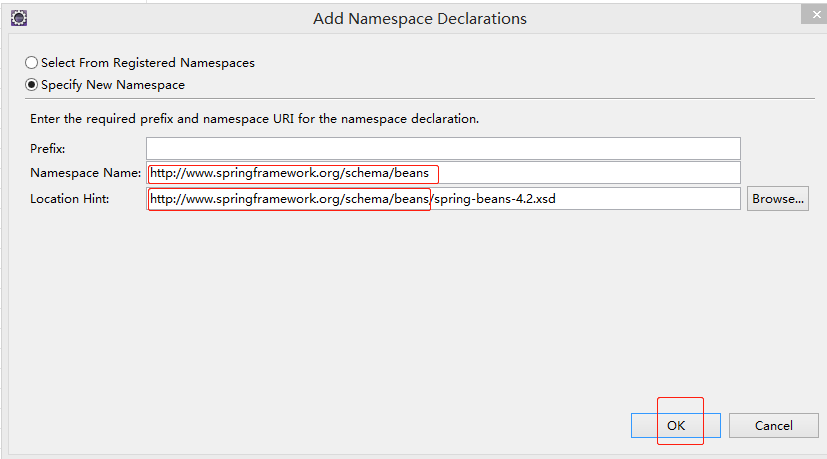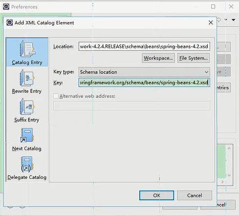 就是刚才导入的4.2.xsd,然后把去掉文件名的复制,粘贴到中间的位置,Prefix前缀目前是空的