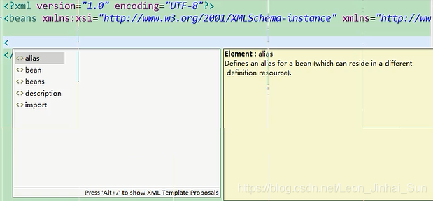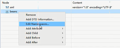 这是两个视图,一个是源码,一个是设计,选中beans元素,右键Edit Nnamespaces
