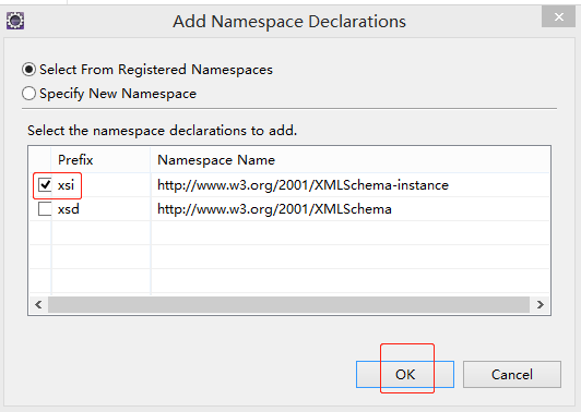 要是之前讲过schema约束的话,你应该知道为什么要导这个xsi,那没讲过也没关系,你们就背下来xsi一定要导就可以了,点击OK