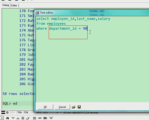 这样来表示,是这三个部门其中之一就可以,我在这里加上一个department_idselect last_name,department_id,salary from employees where department_id=90or department_id=70 or department_id=80