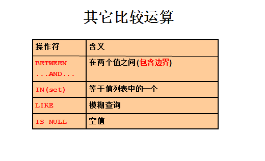 他们的工资是满足大于等于4000,且小于7000的,就是这个符号,这个我们就不用多说了,直接往后走,其他的比较运算符,我们分别来讲一下,第一个叫between and,在两个值之间,他这里加了一个括号,说包含边界,也就是between,工资5000到7000,含5000,并且含7000,这是我们刚才操作的这个,我们4000到7000看一下,20个人,这里边既有4000的,也有7000的,那我们现在使用between and实现一下,select last_name,hire_date,salary from employees where salary between 4000 and 7000