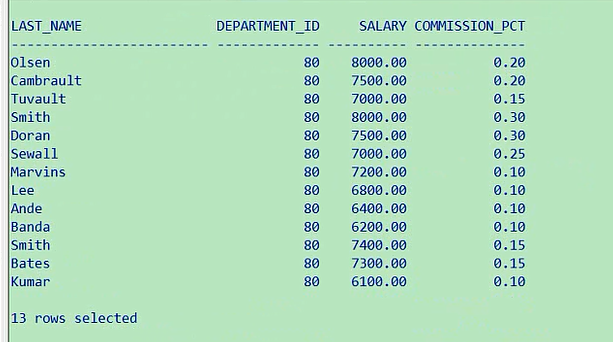 如果你这里如果asc不写的话select last_name,department_id,salary from employees where department_id=80 order by salary
