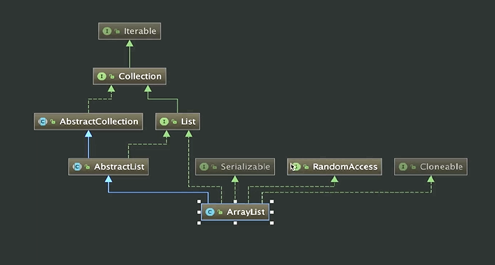 }private class Itr implements Iterator例如这里可以看出来,那我们来看一下ArrayList的一个类图