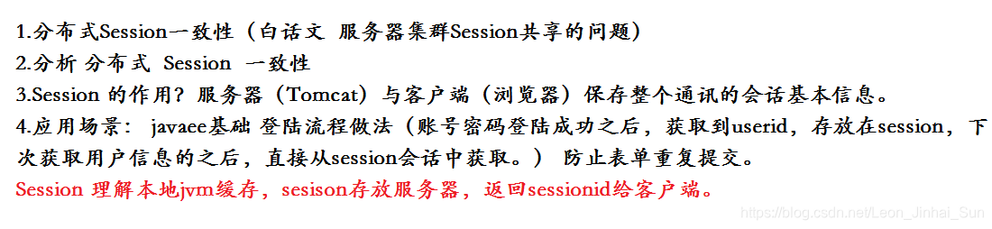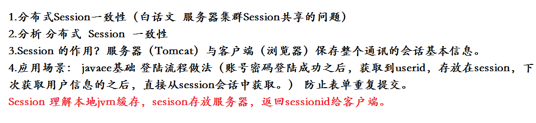 分布式SESSION一致性的问题,分布式SESSION到底如何去解决,分布式SESSION相关的知识,我们会谈到从最底层的SESSION原理,包括SESSION常用问题,SESSION保存在哪个地方,关闭浏览器SESSION会失效吗,这个我彻底分析一下,我们重点主要是讲到这三块,分布式SESSION产生原因,这个大家一定要知道的,分布式SESSION解决方案,最靠谱的关于SESSION的解决方案,今天会谈到其他关于分布式的一些问题,我们在分布式解决方案里面会重点的去讲的,一点一点去给大家讲一下,第一个点我们要谈到一个概念,叫做什么概念呢,叫做分布式SESSION,既然谈到分布式SESSION的话,分布式SESSION他到底是什么意思,你们一句话说一下什么意思,首先分布式SESSION是分布式里面比较基础的知识,分布式SESSION怎么解决,其实我告诉大家,用我们的白话文表的的话非常简单,服务器集群SESSION共享的问题,这个就是白话文,分布式SESSION什么知识点呢,分布式SESSION一致性的问题,那么有人会问,什么叫分布式SESSION一致性问题呢,其实你们不用想的那么绕,分布式SESSION就是服务器集群SESSION共享的问题,既然我们今天要谈到分布式SESSION的话,我们先来给大家分析一下,基本的几个点,我们要拆分一下,既然他叫分布式SESSION的话,我们怎么拆分呢,这是你们在学一个知识的时候,慢慢的去理解到了,第一是分布式,分布式这个概念,再一个是SESSION,再一个是一致性的问题,我先非常简单的去分析一下这个SESSION是干嘛用的,SESSION有 多少人用过的,SESSION的作用,有多少人用过的,作用是什么,有谁知道的,SESSION的作用是什么,保存会话信息,我觉得这样说太不专业了,真的不专业,缓存也不专业,作用和应用场景区别是非常大的,记录用户信息,这个我们叫做应用场景,用我们的白话文表达是什么意思呢,服务器端和客户端,这个时候我们看,这个服务器我们表示什么意思呢,你们用的TOMCAT,保存整个通讯会话的基本信息,这个基本信息到底是干嘛用的呢,我待会会继续给你们说,登陆不是用TOKEN,使用SESSION登陆的,会把SESSIONID存放在session中,这个登陆你们基本上都知道,不管怎么样,只要你刚学JAVA的时候,都是讲过登陆注册的,一般比较简单的应用场景,尤你们在学JAVAEE基础的时候,都会讲一个登陆的流程做法,登陆流程做法,账号密码登陆成功之后,获取到userId,存放在SESSION中,下次获取用户信息的时候,直接从SESSION会话中获取,这个流程你们都做过没有,有没有人做过防止表单重复提交的,其实他也可以用SESSION做,那么我在这个地方讲一下,您们可以把SESSION理解为本地的JVM缓存,这什么意思呢,就是我一旦在你服务器上创建SESSION的话,你的SESSION一定是放在服务器上面的,这个你们一定要记住,然后他会返回一个SESSIONID,返回SessionID给客户端,这段话你们不理解,没关系,我们待会会给你慢慢讲SESSION原理,那么SESSION概念我就不在这里给大家多说了