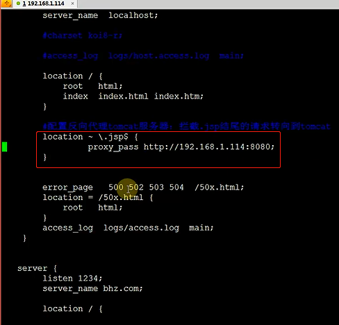 这回你就能够找到了,就是可以加一个参数,方式很多种,那这个就是关于反向代理,你会发现了,就是动静分离了,动态的东西是以jsp结尾的,或者这里面你可以加小括号,这个怎么写来的,正则括号(*.jsp$),一个竖线/,比如*.do然后.action,只要匹配其中一个,只要你发现请求是和tomcat有关,直接扔给tomcat就可以了,这种是非常简单的