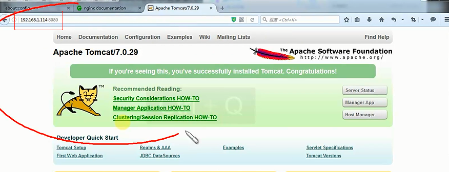 这样的话我就去访问我的地址了,我的地址就是114,http://192.168.1.114:8080,如果tomcat是正常启动,就会进到小猫的界面,进来了