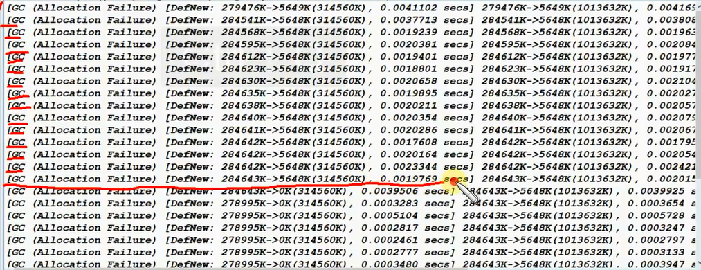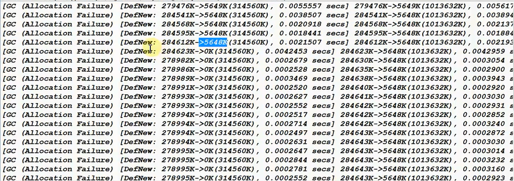 上面这块和下面这块完全不同,DefNew是新生代存的吗,然后16次的时候新生代就直接降为0了,也就是新生代一直引用的5M就直接扔到老年代了,新生代到16次的时候才降到0