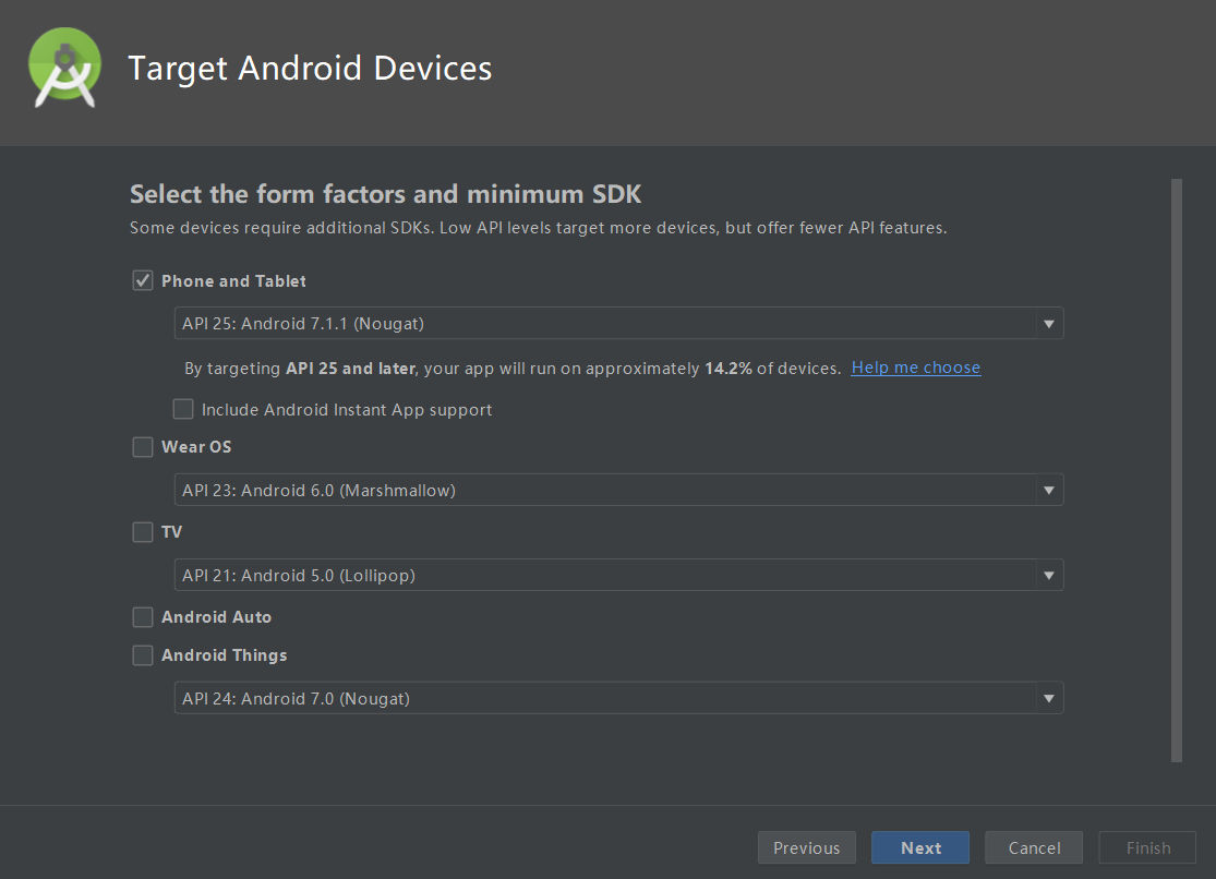 - 带gradle构建完成,可以看到Run按钮点亮,点击运行,要求选择设备,选择一个合适的设备,没有点击创建也可以。