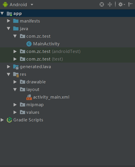 - 在下拉栏可以点击切换项目视图,正常开发中,我们就使用如图所示的Android开发结构即可。