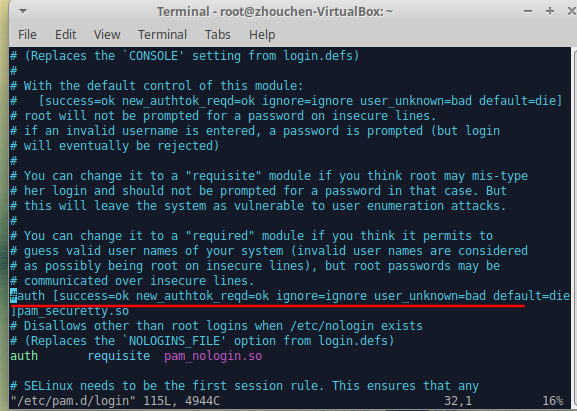 首先,修改/etc/pam.d/login文件,命令如下。