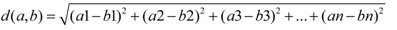 这个公式其实就是欧几里得度量公式。(也可以使用曼哈顿距离公式,当然这两个都是闵可夫斯基距离公式的特例,但是只有欧式距离保证收敛)