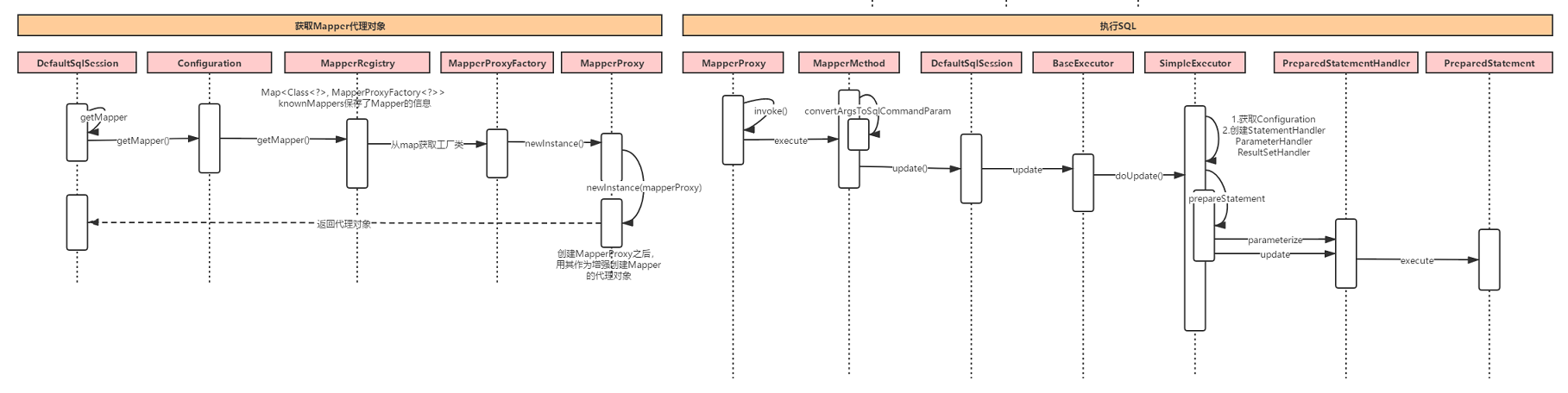 public Object invoke(Object proxy, Method method, Object[] args) throws Throwable {try {//Object本身的方法和Java 8中接口的默认方法不需要去执行SQL,直接执行原来的方法即可if (Object.class.equals(method.getDeclaringClass())) {return method.invoke(this, args);}//判断是否是默认方法(Java 8 接口中新增了默认方法)if (this.isDefaultMethod(method)) {return this.invokeDefaultMethod(proxy, method, args);}} catch (Throwable var5) {throw ExceptionUtil.unwrapThrowable(var5);}//获取方法缓存,这是为了提升效率,MyBatis一旦启动,方法对应的SQL也就确定了MapperMethod mapperMethod = this.cachedMapperMethod(method);//mapperMethod的execute是真正执行SQL的方法return mapperMethod.execute(this.sqlSession, args);}------MapperMethod 对于不同类型的SQL执行不同的方法public Object execute(SqlSession sqlSession, Object[] args) {Object result;Object param;switch(this.command.getType()) {case INSERT://将方法的参数转化成SQL的参数param = this.method.convertArgsToSqlCommandParam(args);//调用sqlSession的方法来执行SQLresult = this.rowCountResult(sqlSession.insert(this.command.getName(), param));break;case UPDATE:param = this.method.convertArgsToSqlCommandParam(args);result = this.rowCountResult(sqlSession.update(this.command.getName(), param));break;case DELETE:param = this.method.convertArgsToSqlCommandParam(args);result = this.rowCountResult(sqlSession.delete(this.command.getName(), param));break;case SELECT:if (this.method.returnsVoid() && this.method.hasResultHandler()) {this.executeWithResultHandler(sqlSession, args);result = null;} else if (this.method.returnsMany()) {result = this.executeForMany(sqlSession, args);} else if (this.method.returnsMap()) {result = this.executeForMap(sqlSession, args);} else if (this.method.returnsCursor()) {result = this.executeForCursor(sqlSession, args);} else {param = this.method.convertArgsToSqlCommandParam(args);result = sqlSession.selectOne(this.command.getName(), param);if (this.method.returnsOptional() && (result == null || !this.method.getReturnType().equals(result.getClass()))) {result = Optional.ofNullable(result);}}break;case FLUSH:result = sqlSession.flushStatements();break;default:throw new BindingException("Unknown execution method for: " + this.command.getName());}if (result == null && this.method.getReturnType().isPrimitive() && !this.method.returnsVoid()) {throw new BindingException("Mapper method '" + this.command.getName() + " attempted to return null from a method with a primitive return type (" + this.method.getReturnType() + ").");} else {return result;}}
