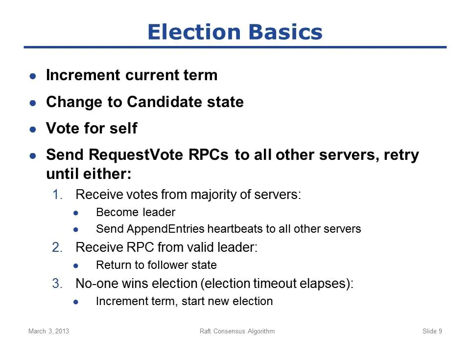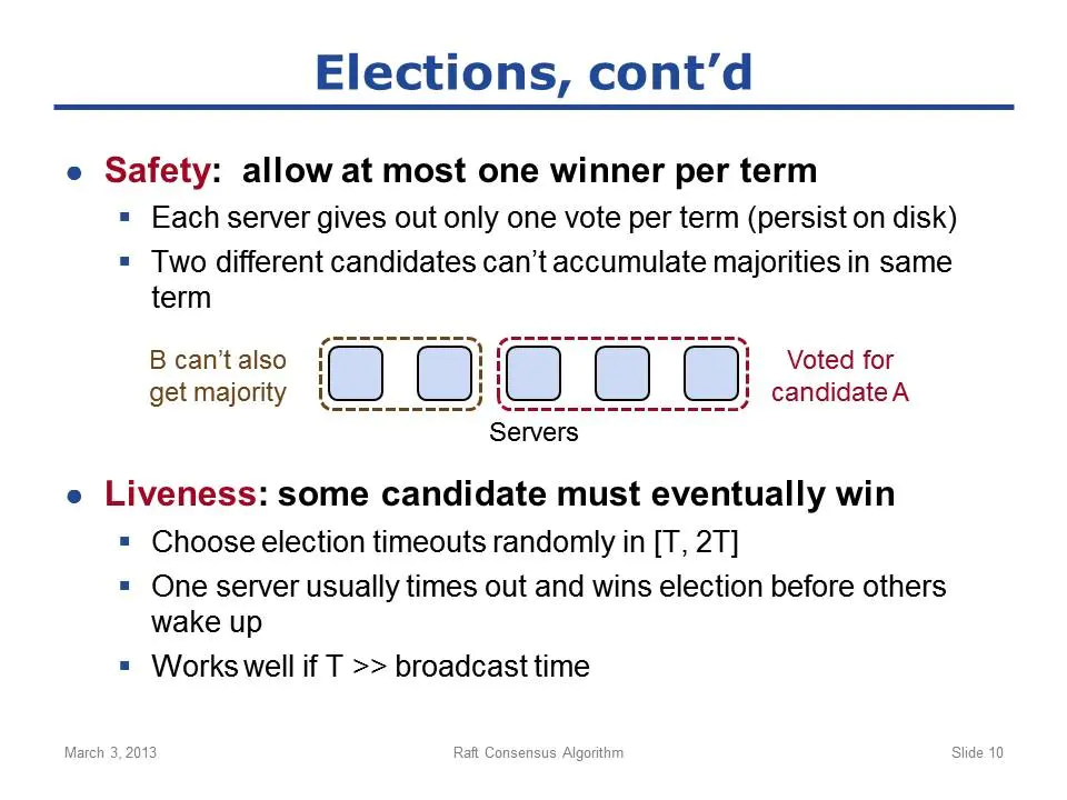 选举过程中必须保证两大特性(图中cont'd是continued的意思,表示接着上一个slide继续):