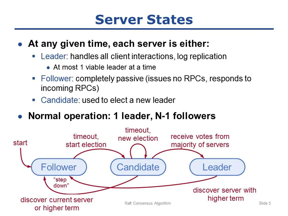 在任意时刻,系统中的任意一个server,只能是以下3种状态中的一种: