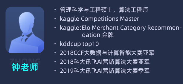 本次课程由多年经验的算法工程师钟老师教授,他曾在多次算法类的赛中拔得头筹。
