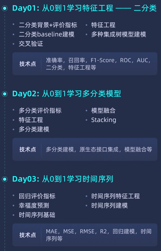别担心,这三天课程,将带你提升数据挖掘实战能力。