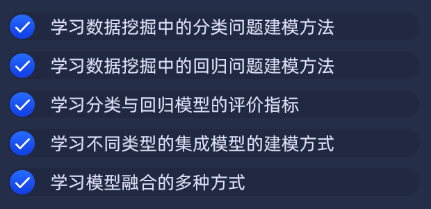 那么,你在学习数据挖掘的时候,是否有许多疑惑,比如,从0到1构建数据挖掘体系比较吃力。理不太清特征工程方式,不知道如何正确的学习多种模型融合方式?并且不知道如何具体的学习分类、回归等不同场景的机器学习建模?