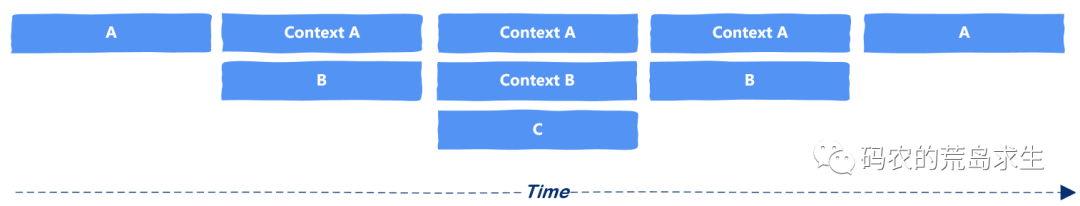这些context保存在哪里呢?我想你已经猜到了,没错,就是栈中,我们为每个函数分配一块空间,当A函数调用B函数时,我们在这块空间中保存该函数的context,当B函数执行结束后,我们再用该context恢复A函数的运行。