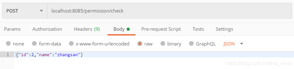 public class TestController {@RequestMapping(value = "/check", method = RequestMethod.POST)@PermissionsAnnotation()public JSONObject getGroupList(@RequestBody JSONObject request) {return JSON.parseObject("{\"message\":\"SUCCESS\",\"code\":200,\"data\":" + request + "}");}