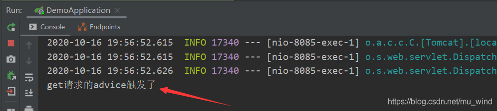 接下来,我们先看一个极简的例子:所有的get请求被调用前在控制台输出一句"get请求的advice触发了"。