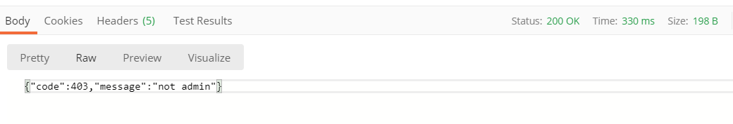 public class PermissionSecondAdvice {@Pointcut("@annotation(com.example.demo.PermissionsAnnotation)")private void permissionCheck() {}@Around("permissionCheck()")public Object permissionCheckSecond(ProceedingJoinPoint joinPoint) throws Throwable {System.out.println("===================第二个切面===================:" + System.currentTimeMillis());//获取请求参数,详见接口类Object[] objects = joinPoint.getArgs();Long id = ((JSONObject) objects[0]).getLong("id");String name = ((JSONObject) objects[0]).getString("name");System.out.println("id->>>>>>>>>>>>>>>>>>>>>>" + id);System.out.println("name->>>>>>>>>>>>>>>>>>>>>>" + name);// name不是管理员则抛出异常if (!name.equals("admin")) {return JSON.parseObject("{\"message\":\"not admin\",\"code\":403}");}return joinPoint.proceed();}