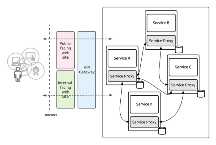 所有服务到服务的通信将通过称为“服务代理”的组件/层,因此我们不必在每个服务中都实现它