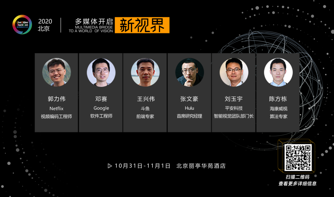 酒水、音乐,还有难得一见的圈内老友、技术明星。10月31日晚,LiveVideoStackCon 2020 北京站社交晚宴将在北京丽亭华苑酒店举行,这是一次难得的多媒体技术人的聚会,在全球疫情的背景下更是如此。晚宴将邀请包括Google软件工程师邓赛、Hulu首席研究经理张文豪、Netflix视频编码工程师郭力伟、思科首席架构和软件工程师吴端培等在内的大会讲师及出品人。